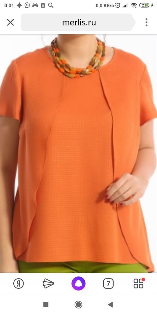 блузка женская из сп мерлис, р-р 44, но идет на 46 большемерит. не такая яркая как на фото кирпичный цвет. смотреть на галле