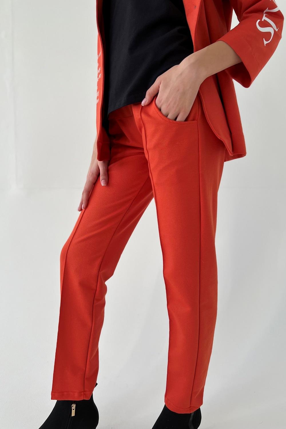 Ткань футер с лайкрой 2-х нитка Состав хлопок 72%, ПЭ 20%, эластан 8% Описание Брюки на поясе, с боковыми карманами, на кокетке. Вдоль передних половинок расположены "стрелки".