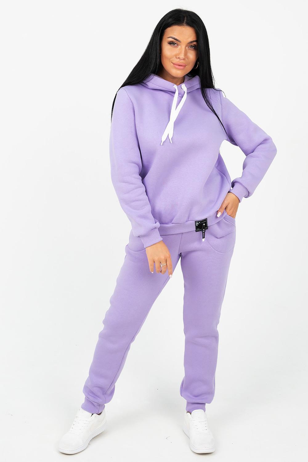 Ткань: футер 3х-нитка с начесом. Пояс и манжет рукава толстовки выполнен из кашкорсе. Брюки с высокой посадкой, на резинке, с боковыми карманами.